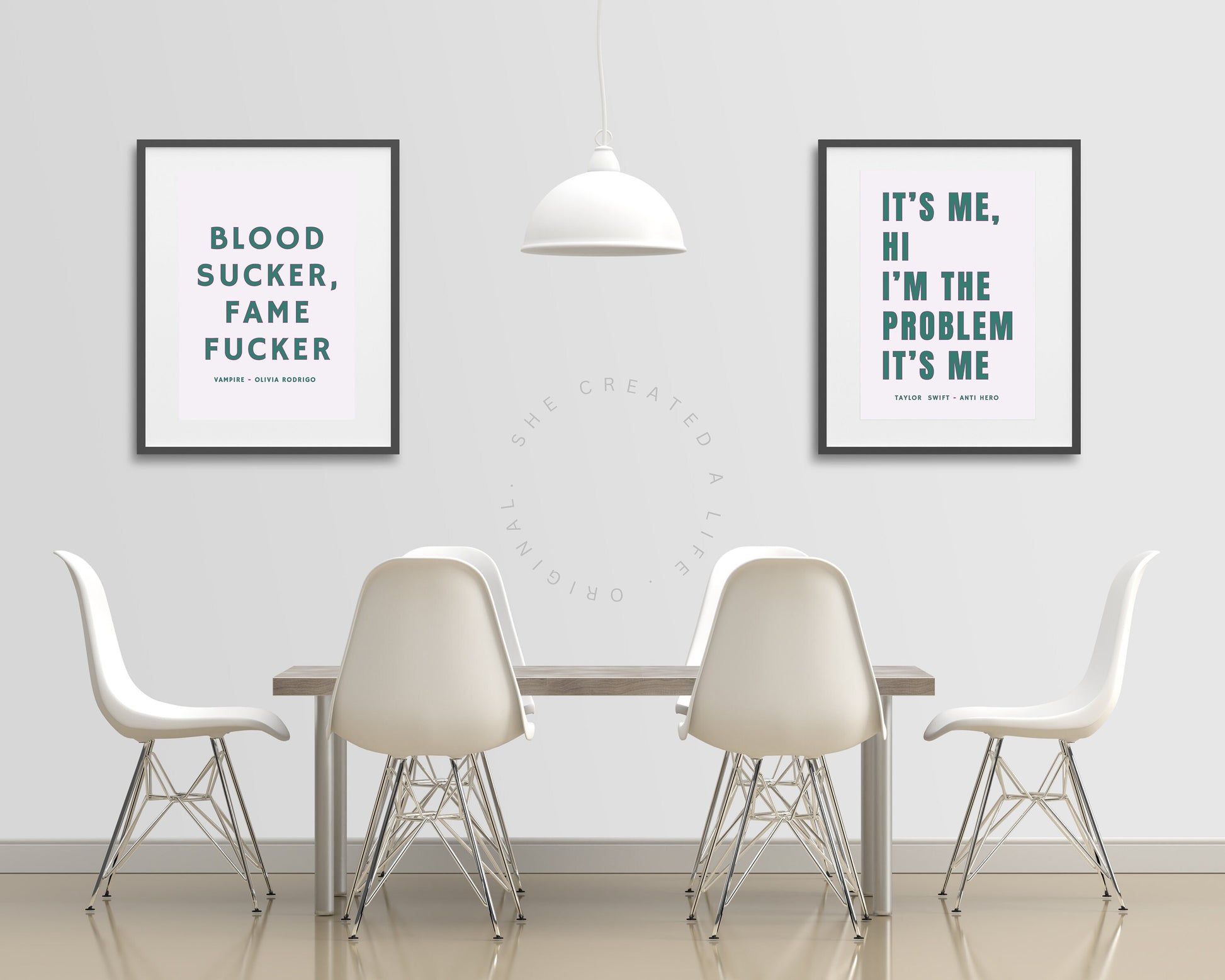 Blood Sucker Fame Fucker, Vampire, Olivia Rodrigo, Art Print Poster, Song Lyrics, Pink Typography Wall Art, Eclectic Funky Quirky Home Decor