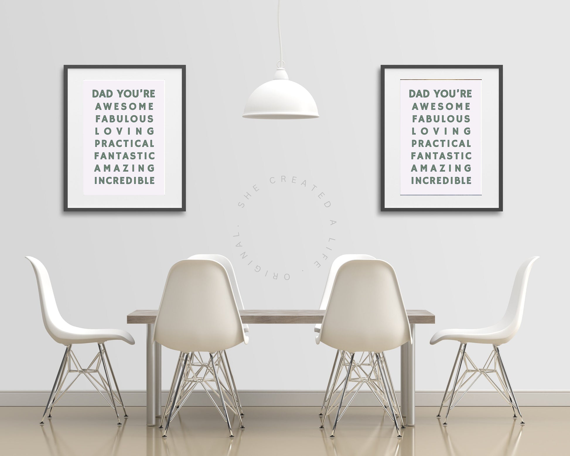 Dad You're Awesome Art Print Poster, Fathers Day, Dads Birthday, Great Dad Gift Idea, Typography Wall Art, Family Portrait Quirky Home Decor