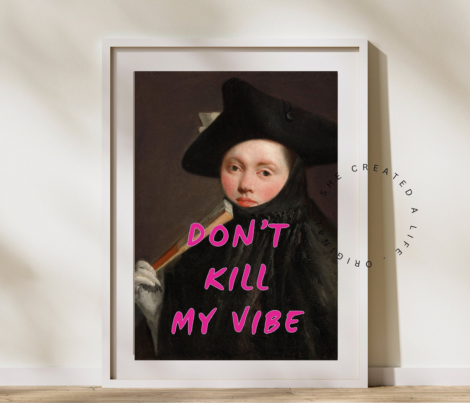 Don't Kill My Vibe, Altered Print Poster, Funny Portrait, Pink Typography Wall Art, Eclectic Funky Sassy Quirky Home Decor, Feminist Quote