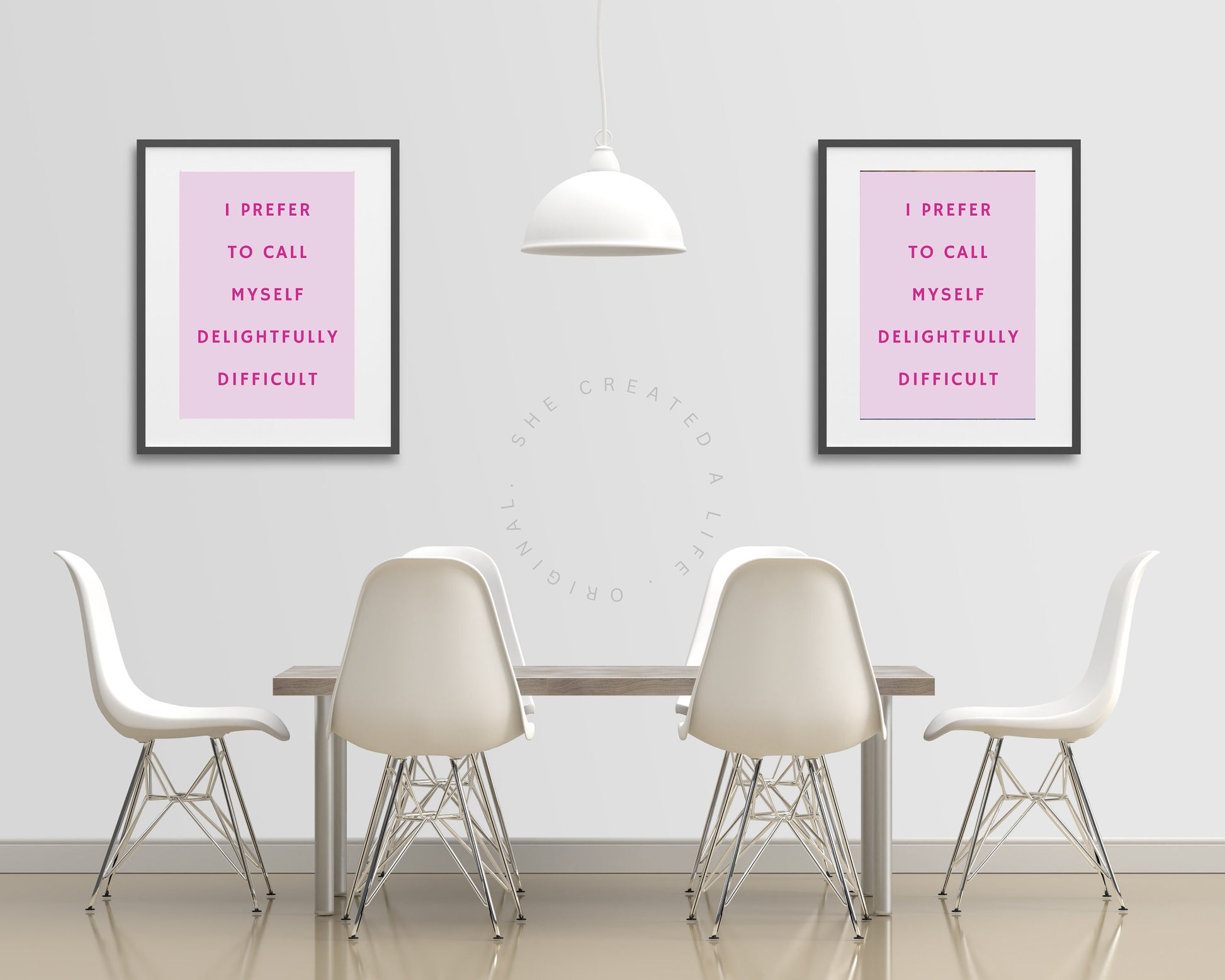 I Prefer To Call Myself Delightfully Difficult, Download, Art Print Poster, Pink Typography Wall Art, Eclectic Funky Sassy Quirky Home Decor