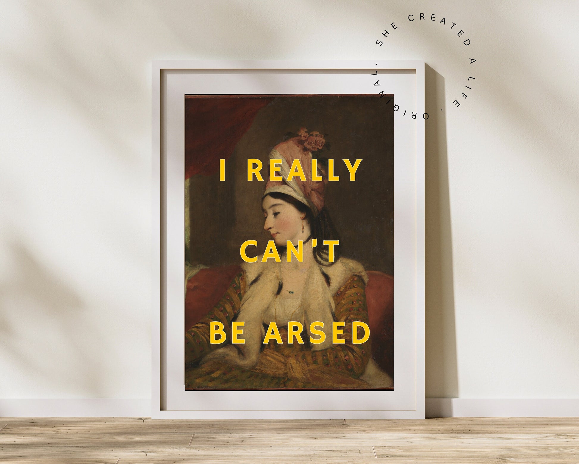 I Really Can't Be Arsed, Altered Art Portrait, Girls Room, Dorm Wall Art, Witty, Maximalist Print, Quirky Home Decor, Funny Quote Poster Art