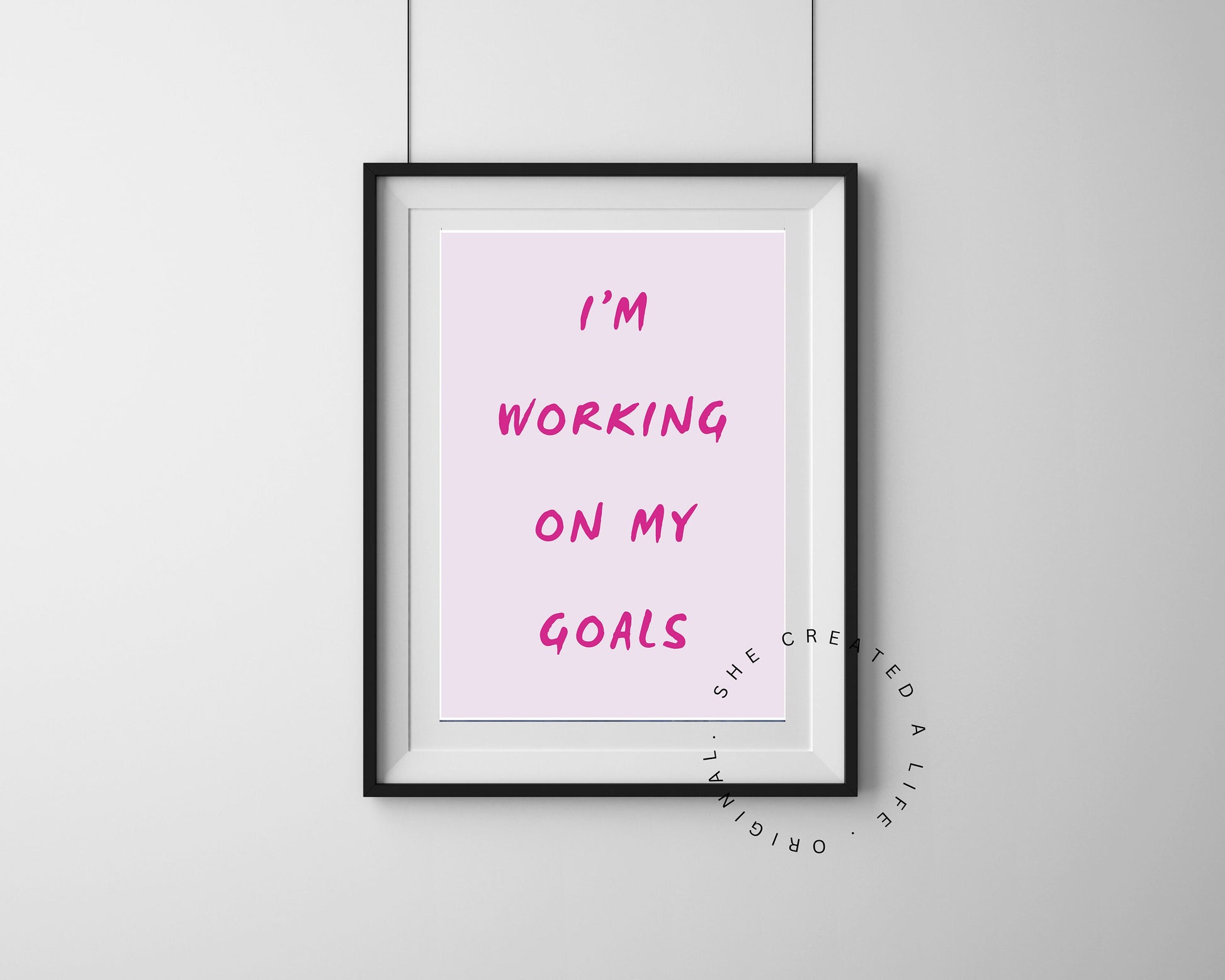 I'm Working On My Goals, Art Print Poster, Dorm Room, Motivation, Pink Typography Wall Art, Eclectic Funky Sassy Inspiring Quirky Home Decor