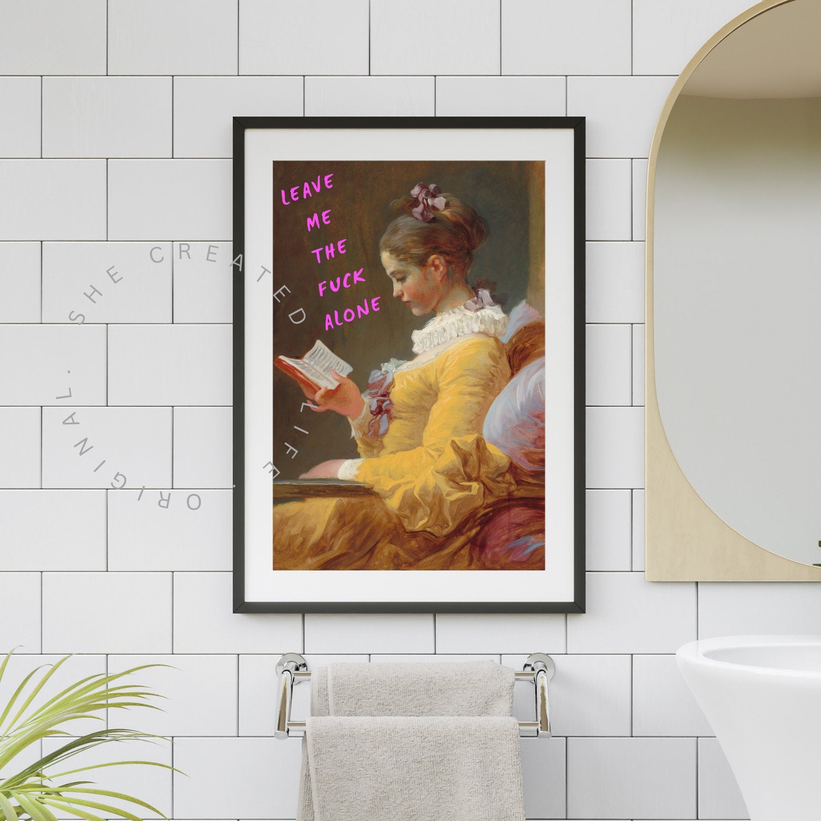 If you enjoy a spot of humour, this classic altered art print is for you. Great for your reading area or perhaps close by your favourite chair. An altered witty piece "Leave me the fuck alone" is an amusing interpretation of a classic portrait. Lift your mood and surroundings with this unique cheeky print.