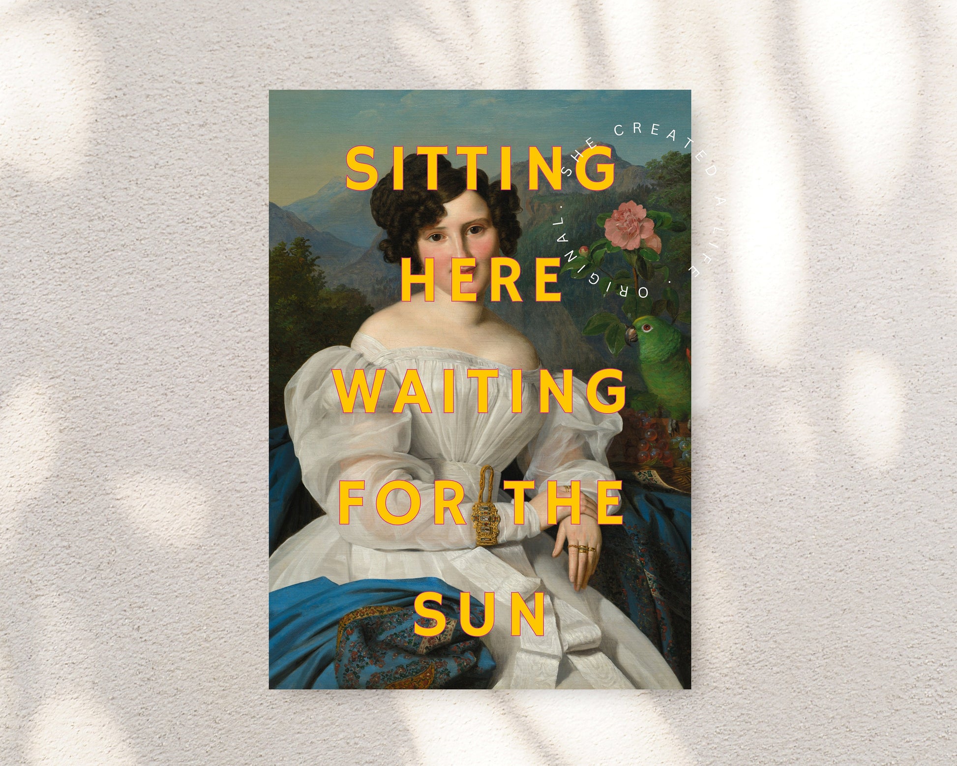 Sitting Here Waiting For The Sun, An altered art portrait of a classical lady with golden yellow sunshine typography. For any sun worshipper whether waiting for the metaphorical sun to return after darkness or the actual sun✨ This piece will brighten up your mood. An image that will make you smile everyday, Express yourself, no more boring walls, an image you'll be proud to hang in your home.