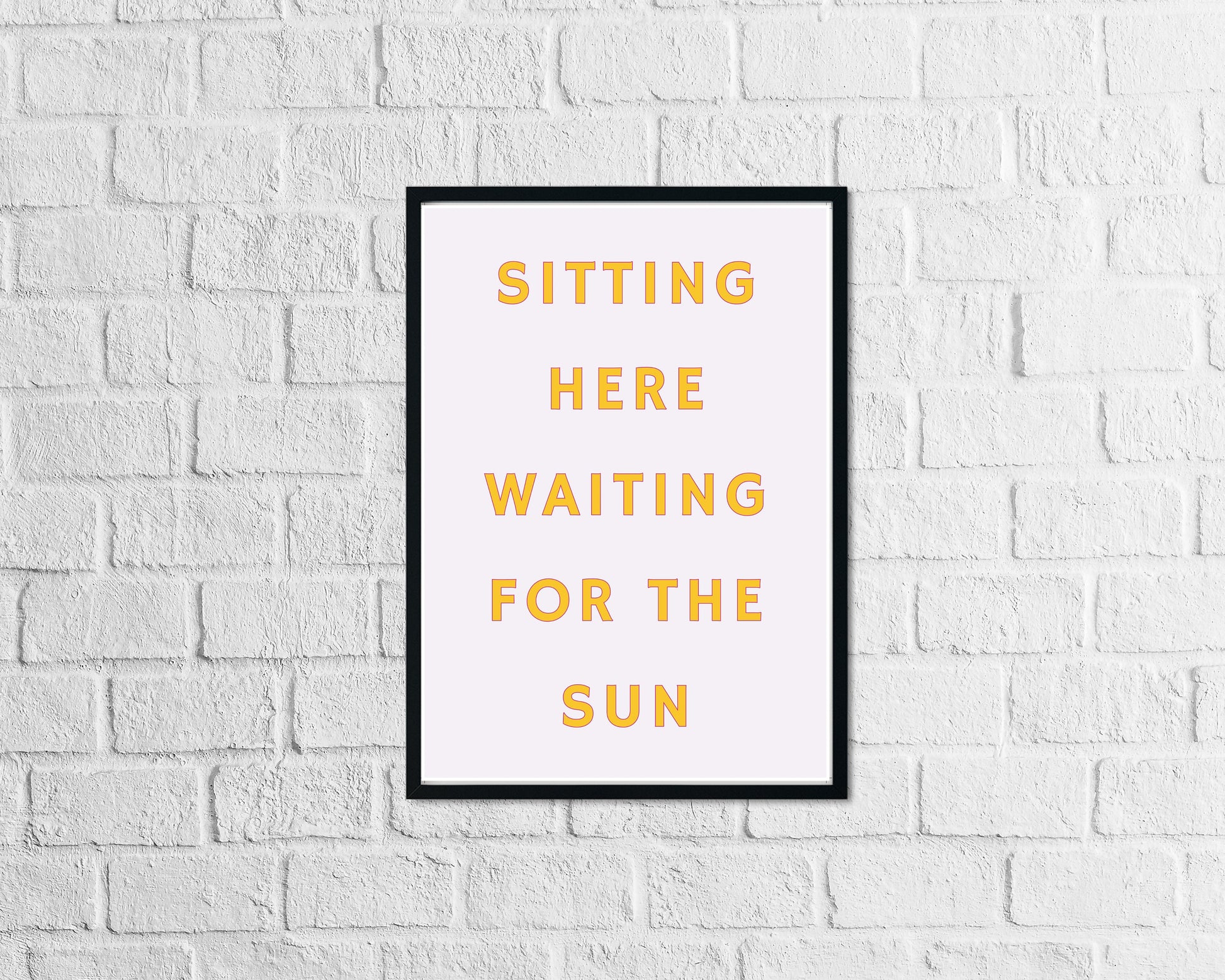 Sitting Here Waiting For The Sun, Art Print Poster, Sun Worshipper, Typography Wall Art, Eclectic Print, Cute Funky Sassy, Quirky Home Decor