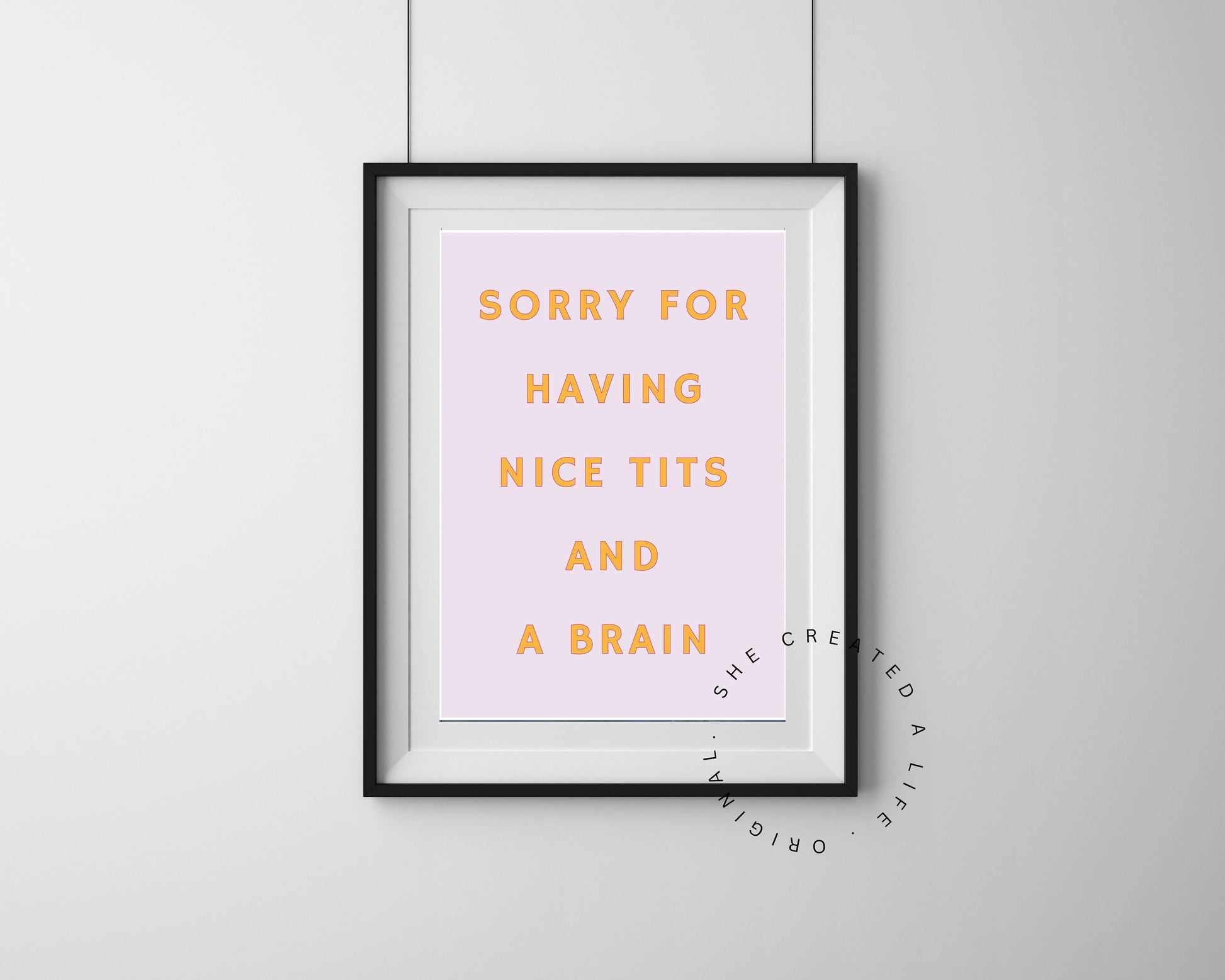 Sorry For Having Nice Tits and A Brain. Witty words for any female, the combination of the pink base and yellow lettering brings this somewhat feminist statement bang up to date, quirky, fun and with a message. Don't be boring, make a statement and decorate your walls with personality.