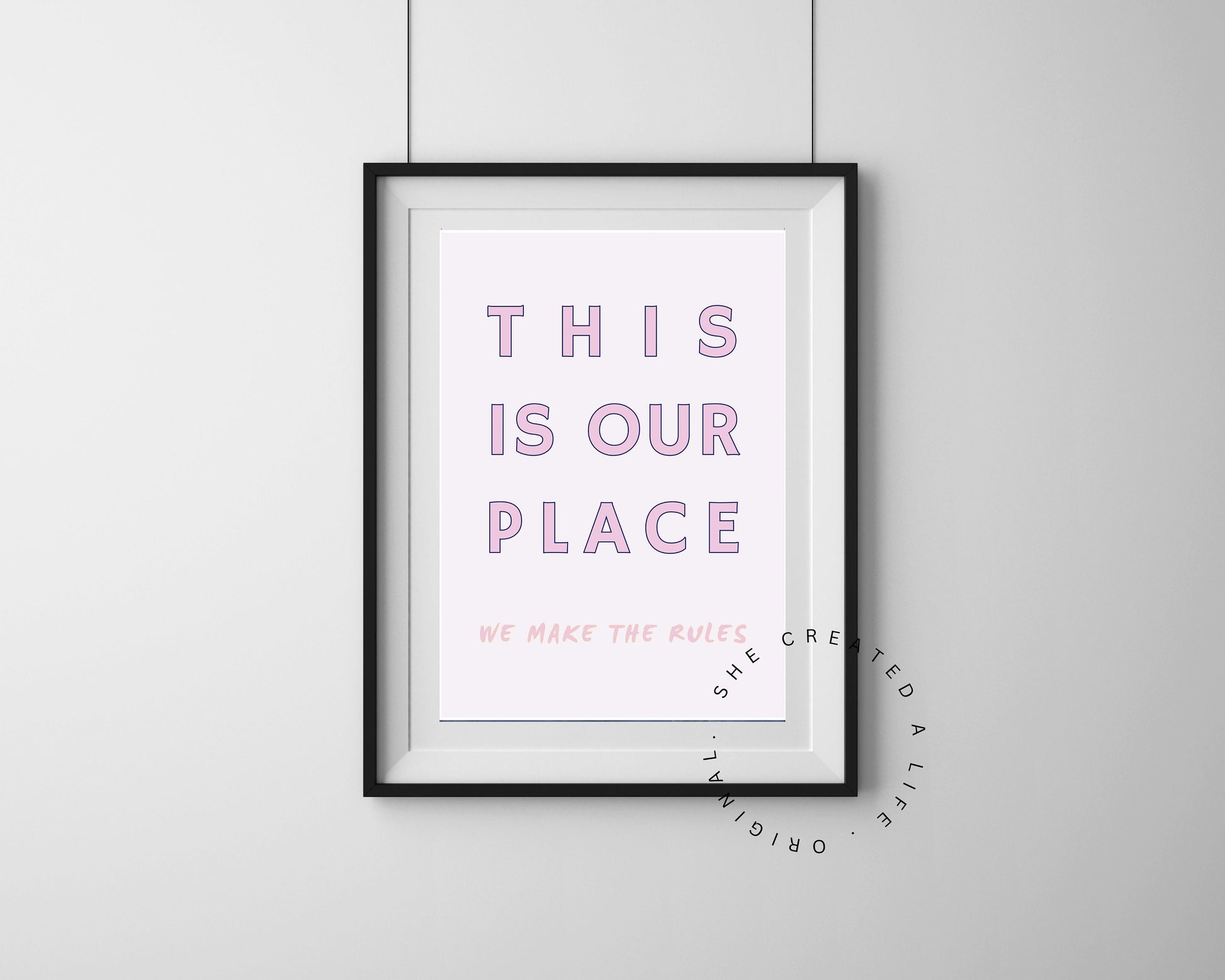 This is Our Place We Make The Rules, Art Print Poster, Swift Lyrics, Pink Wall Art, Eclectic Funky Sassy Quirky Home Decor, New Home Gift