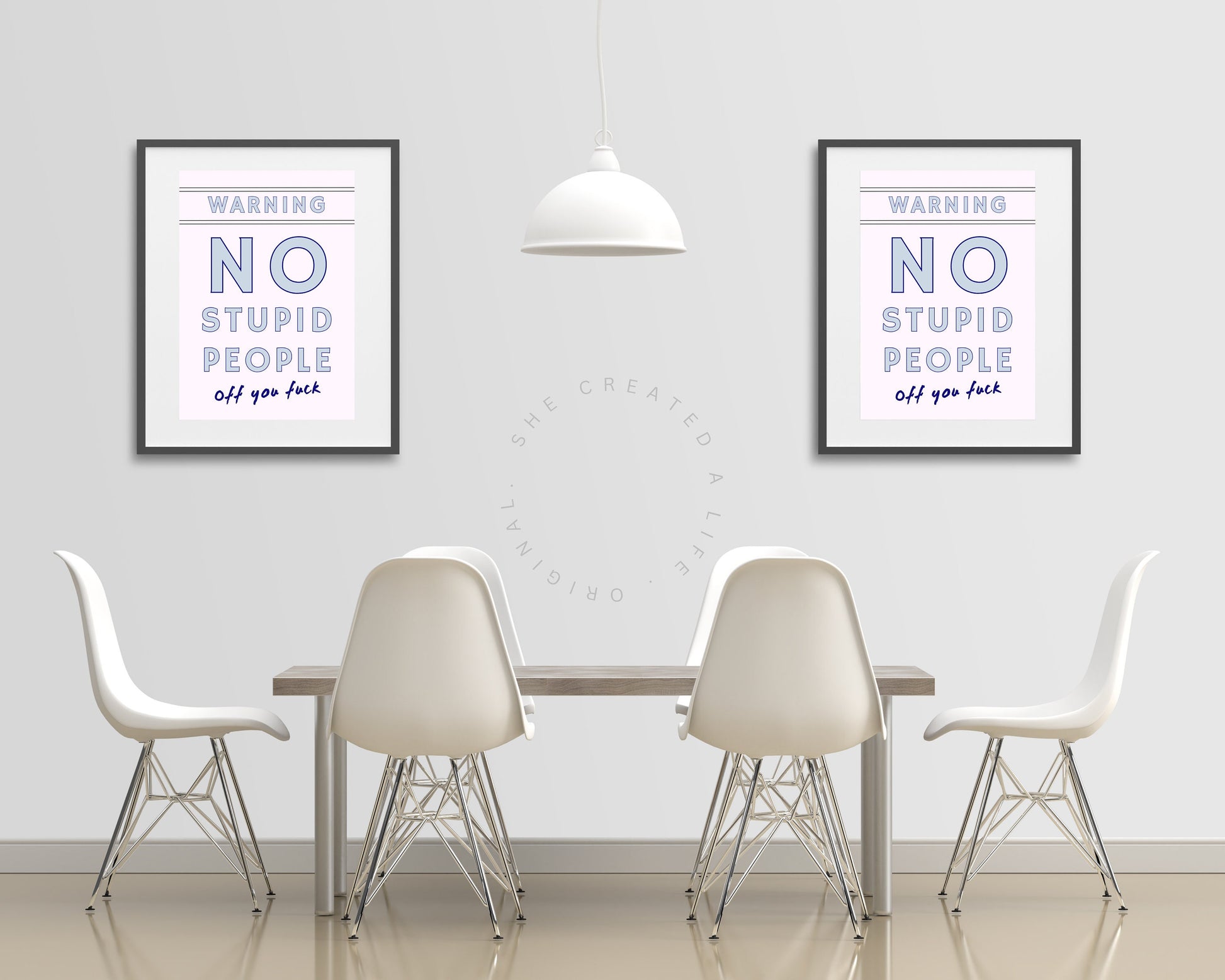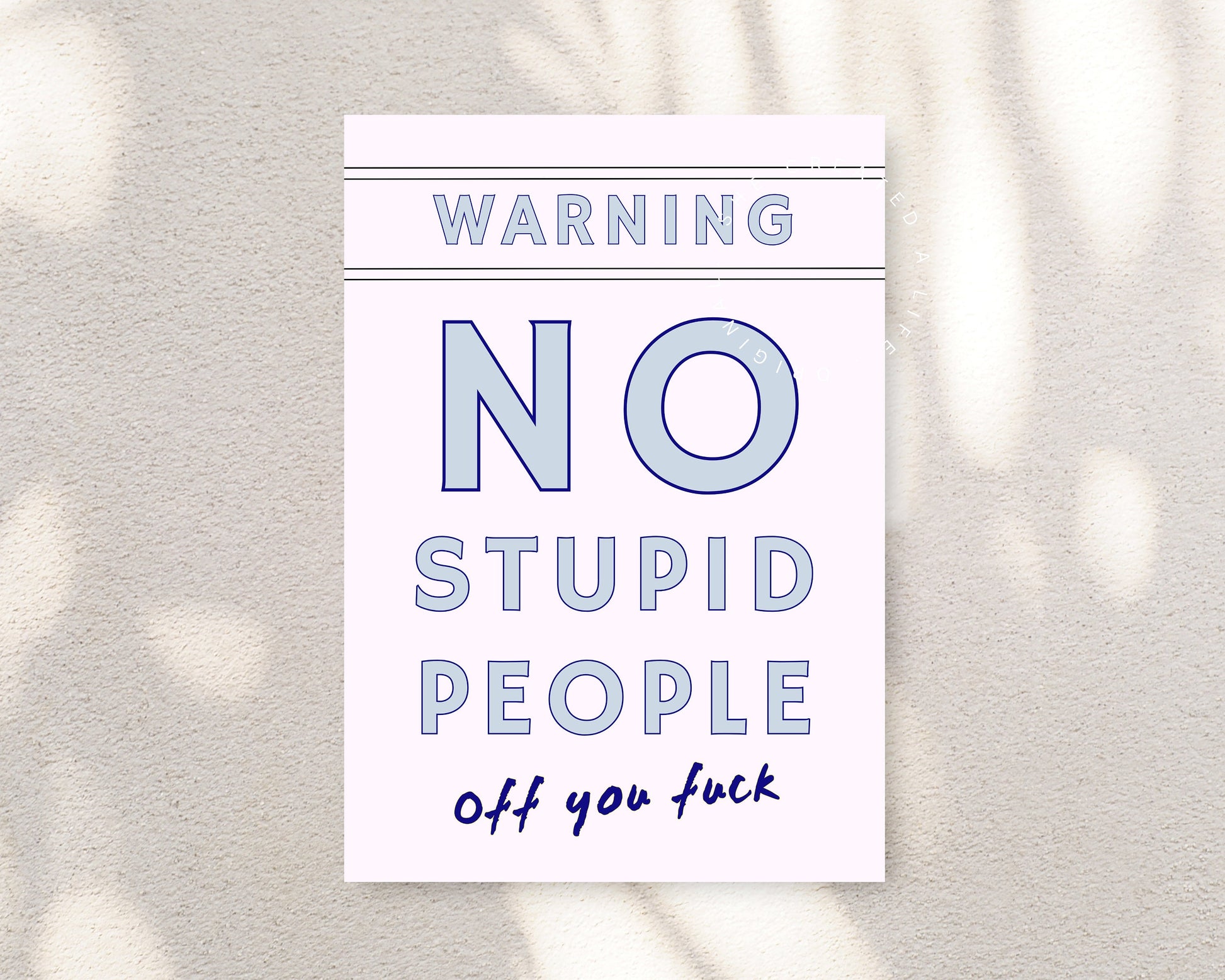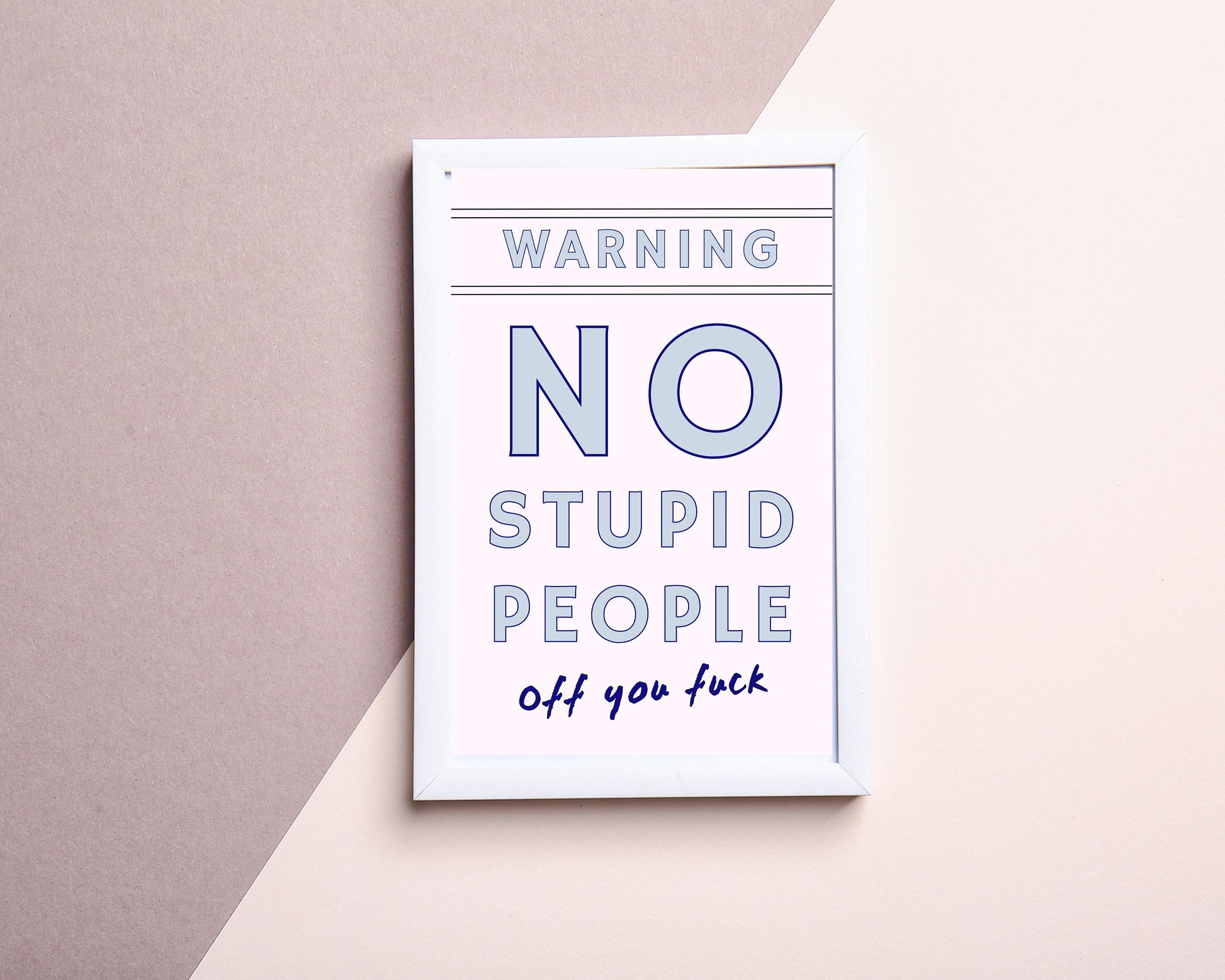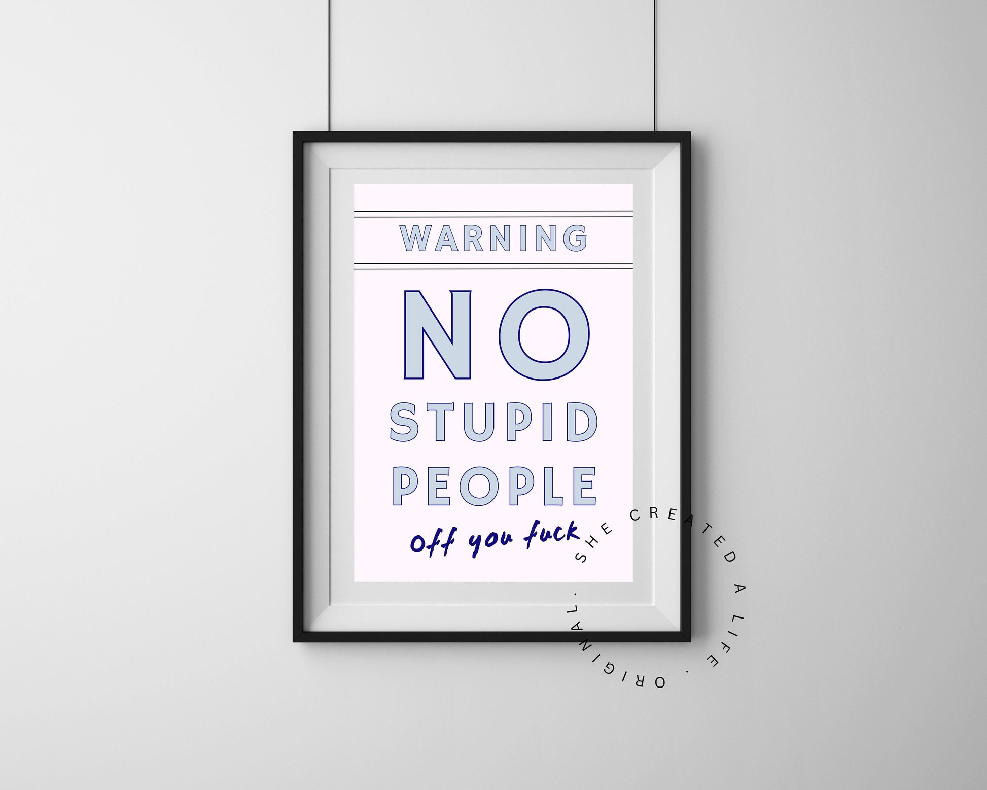 Warning No stupid People, Wall Art Print Poster, Funny Swear Words Print, New Home Gift, Funky Wall Art, Eclectic Poster, Quirky Home Decor
