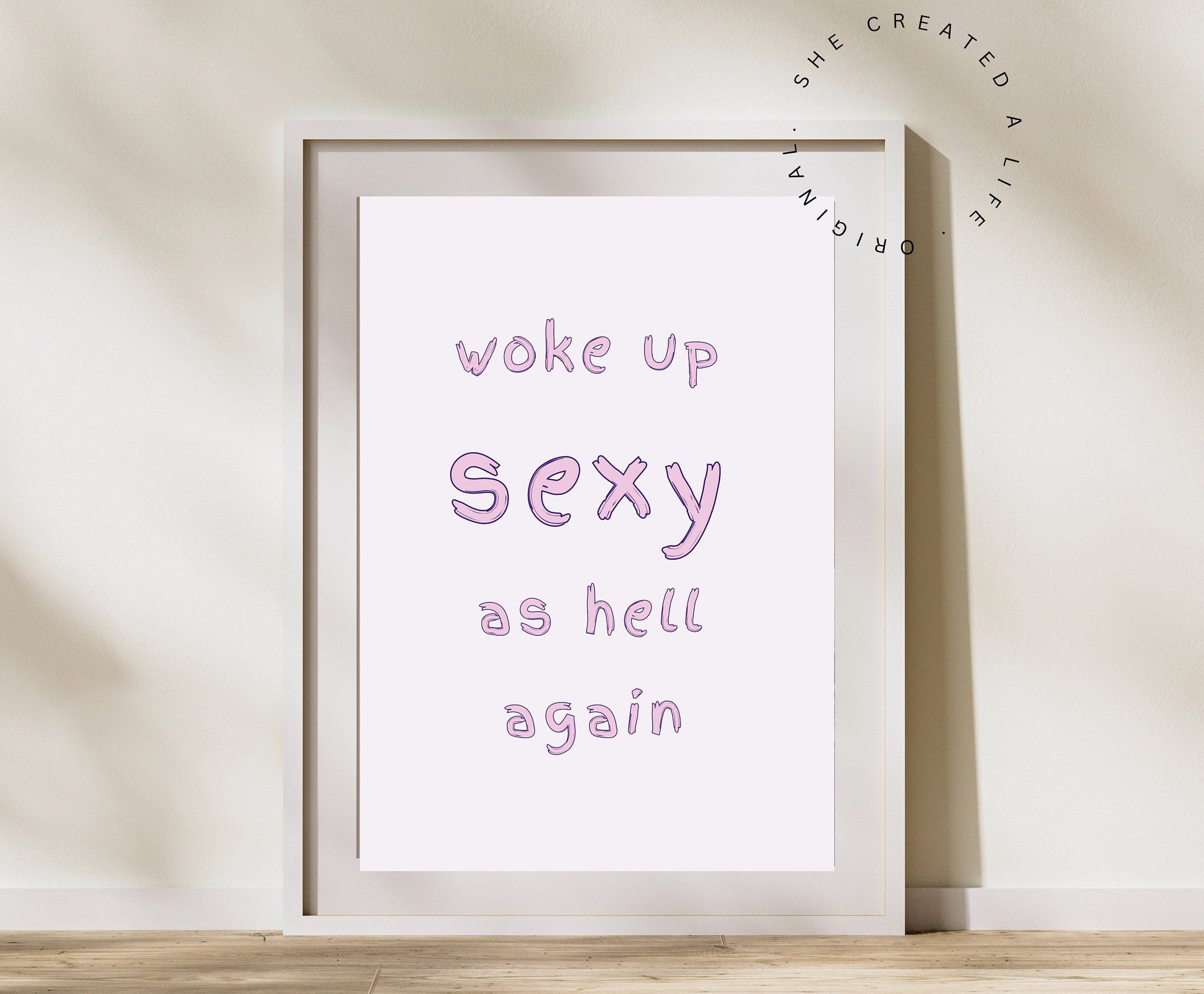 Woke Up Sexy As Hell Again, Print Poster Wall Art Pink Typography, Beauty Regime, Sarcastic Comment, Eclectic Funky Sassy Quirky Home Decor